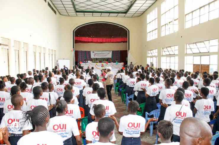 Environ 300 élèves filles de différentes écoles ont pris part à cette conférence au lycée Bwena Muntu, dans la commune de Kananga. Ici, la première dame a exhorté les jeunes filles à s’adonner aux études.